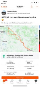 Basti ist ein Sportler, der wenn er eine Zusage gegeben hat sie nicht wegen anderer Dinge aufgibt👍. So hatte er schon im Frühjahr seinem Kollegen versprochen gemeinsam mal nach Dresden zu fahren. Er macht das natürlich etwas anders 😳🧐 als die normalen Touris🤓 er fährt nonstop hin und zurück. Die 300 km 😳🙈die dabei abgerissen werden, sieht man ja leistungsmäßig auf dem beiliegenden Bild. Ab sofort, wird er aber wieder sich mehr auf die anderen beiden Disziplinen🏊🏃🏻♂️ orientieren. So dass er in einigen Wochen sehr wettbewerbsfähig sein wird. 🤗