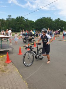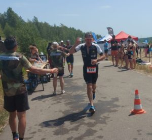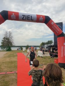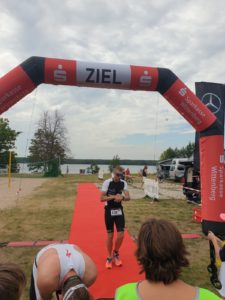 Auf dem Rad holte sich Basti dann den ein oder anderen und auch beim Laufen auf dem „glühendem Asphalt“ legte er noch eine Schippe drauf und überholte sogar noch den Dauersieger vom Jedermannrennen in Bergwitz, um am Ende den „undankbaren“ 4. Platz mit nur 33 Sekunden Rückstand zum 3. Platzierten zu erreichen. Dies bedeutet aber in seiner Altersklasse den Sieg.