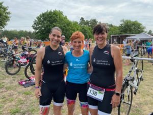 Bei angekündigten 36° machten wir uns zu dritt auf den Weg zum Störmthaler See in Leipzig zum Sparkassen TriDay Triathlon.