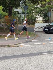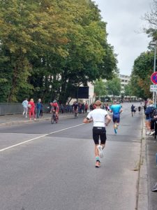 Ich fand schnell ein Wohlfühltempo und lief in meiner grob geplanten Pace. Von Kilometer 4-8 hatte ich mit Problemen im unteren Bauchbereich zu „kämpfen“. Stehen bleiben war keine Option für mich, so lief ich mit leicht verlangsamtem Tempo weiter und Gott sei Dank verflogen die Schmerzen ab Kilometer 9. Die Stimmung auf der Laufstrecke war super und die Verpflegungspunkte sehr gut angeordnet. Lediglich eine Passage gilt es zu kritisieren, da sich auf einem Fußweg Hin – und Rückläufer begegneten. Das stellte sich gerade in der 2. und 3. Runde, für die vermeintlich schnelleren Läufer problematisch dar. Mit dem 3. eingesammelten Rundenbändchen ging es nun zurück zum Stadion🏟. Ich konnte trotz einiger Umstände einen für mich zufriedenstellenden Halbmarathon in 1:23:50 laufen.