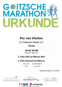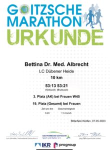 Fast 2000 Sportler beteiligten sich an der Goitzsche in Bitterfeld auf den verschiedenen Distanzen. Unsere Drei waren an der 10 km Startlinie zu finden. 💪 Am schnellsten war Per der nach 34:43 min im Ziel war und den 2. Platz in der M 35 belegte. Bettina absolvierte seit langem mal wieder einen Wettkampf und ist mit dem 3. Platz in der W 45 nach 53:13 min sehr zufrieden. Unser Werner wiederholte den Vorjahressieg in der M 70 mit 55:23 min. Toll gemacht. 🥇 😅