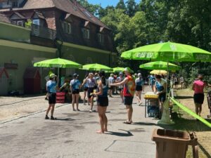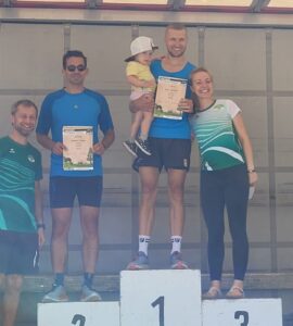 Zum Sportlichen: Basti machte es knapp 1 Woche nach der Challenge Roth taktisch hervorragend und wiederholte seinen Vorjahressieg vor heimischer Kulisse!! Katja ging es auch vorsichtig an und gewinnt die W 40! Sylke belegt den 3. Platz in der W 50. Werner hatte etwas Probleme und nahm den 2. Platz in der M 70 locker mit. Jens ist endlich wieder fit und war mit dem 7. Platz in der m 45 nicht unzufrieden. Bei leckerem Essen, Eis, Bier, Radler…konnten alle fix regenerieren.