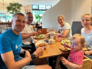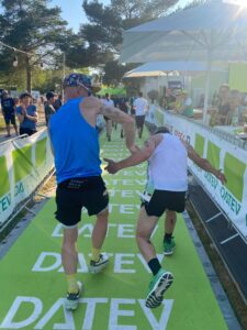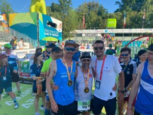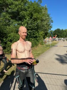 Sein Langdistanzdebüt gab Basti. Auch wenn die Vorbereitung nicht ganz komplikationslos lief, lieferte er ein Wahnsinnsrennen ab. Unterwegs immer positiv gestimmt😂, erreichte er das Ziel nach 9:26:46 h und war happy. 🤗🤗 Unsere Ladies 🤗von LC Dübener Heide in der Besetzung, Lea Köder, Petra Paule, und Katja Ceglarek belegten mit einer Zeit von 11:20:09 h den 24. Platz! Eine tolle Leistung der drei Mädels, wobei man sagen muss, dass Lea noch nie so weit geschwommen ist und Katja ihren ersten Marathon lächelnd absolviert hat💐. Petra als gestandene Langdistanzlerin (zwei Mal WM Hawaii) war nach ihrer Verletzung eine tolle Bereicherung. 👍✌️Die Männer der Hausverwaltung Kluge mussten leider Federn lassen. Michael Hopp startete souverän beim Schwimmen 🏊und übergab an Per, der mit immer voller werdender Radstrecke 🚴🏻♂️eine sehr gute Trainingsfahrt hinlegte👍. Er übergab dann an Denis, der optimistisch startete. 🤗 leider konnte er das Tempo nicht halten. Nach 10:15:03 h sah er ausgepumpt 😳🥵die Ziellinie. 🧐