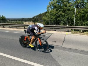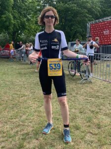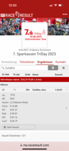 Jens musste in diesem Jahr unsere Fahnen am Störmthaler allein hochhalten. Die Radstrecke wurde geändert und war gut befahrbar. Nach 1:24:01 h belegte Jens den 11. Platz in der M45. Gratulation.