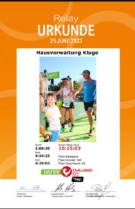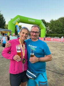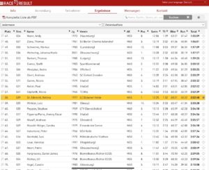 Unsere Starter sind auch älter geworden – hier geht es dann fast nur noch um die Platzierung. Denis hätte den Lauf nicht machen sollen – seine 11:30 min und der 2. Platz in der M50 sollten sich in der Woche noch negativ auswirken. Werner siegte mit 15:30 min in der M 70. Katja holte sich mit einen kontrollierten Lauf nach 15:14 min den Sieg in der W 40 und Sylke belegte mit 16:02 min den 3. Platz in der W 50.