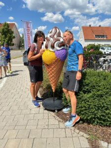Auch in diesem Jahr waren wir im bayrischen Triathlon Mekka Roth vertreten. Bereits vor einem Jahr sicherten wir uns Einzelstartplätze und zwei Staffelstartplätze für die größte Triathlon Party in Deutschland. Fast alle🧐😉 aus unserem Team bereitet sich akribisch auf den Wettkampf vor und dennoch muss man sagen, es gilt immer noch das Motto: bevor man das Ziel erreicht, muss es erst einmal an die Startlinie schaffen!!🤓Leider spielte bei Susanne und Volker die Gesundheit nicht ganz mit😢😭, so dass sie ihren Einsatz absagen mussten. Glücklicherweise konnte Ersatz beschafft werden. Herzlichen Dank 🤗✌️an das Team Sirius von Yvonne, die Petra in das Rennen schickte und an Per, der die Männermannschaft verstärkte. Gemeinsam mit fast 4000 Athleten aus über 90 Ländern standen wir an der Startlinie am Main – Donau – Kanal. Bei typisch bayerischem Wetter – blauer Himmel, Sonnenschein und Temperaturen bis zu 30°🤪 – durften die 3,8 km schwimmend, 180 km auf dem Rad und die 42 km laufend zurückgelegt werden. Das Zuschauerinteresse war gigantisch! 😊 An vielen Stellen der Strecke standen die Menschenmassen in Dreier – und Viererreihe und feuerten die Athleten frenetisch an. 💪🤗🤗👍 Auch schon in den Tagen der Vorbereitung merkt man, wie der Landkreis Roth mit seinen Bürgern die Challenge Roth pusht und lebt. Fast überall freundliche Menschen, die sich auf das Highlight freuten. (Nicht wie in unserer Region, wo sich die übergewichtigen🤨 aufregen, dass die Straße gesperrt ist und sie einfach mal 100 m Umweg zu Fuß bewältigen müssen. In Roth traf man zu 95 % fitte Menschen und keine Fetten😩