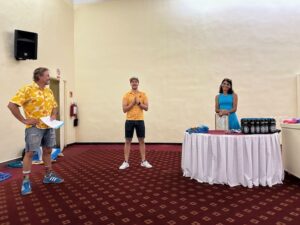 Volker & Susanne waren nach 5 Jahren wieder einmal mit Hannes Hawaii Tour unterwegs – über Cancún nach Cozumel. Wenn man mit Hannes fliegt und der Chef auch selbst dabei ist – dann wird es ein Erfolg. Wir hatten eine super Zeit mit ganz tollen Sportfreundschaften sowie beste Gespräche in einer herrlichen Umgebung. 🏝️ Beim Ironman unterstützen wir die Athleten aus unserer Reisegruppe, immerhin auch 20 und dazu noch 3 Starter aus dem Team von Yvonne. Das Schwimmen hat man abgesagt, da der Hafenkommandant den Pier nicht freigegeben hat, da in den Tagen vor dem WK durch hohen Wellengang ein Schaden festgestellt wurde. 🤔