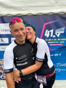 Volker und Susanne: Beide traten im Sprint-Triathlon an. Susanne war mit ihrer Zeit von 1:27:32 h zufrieden und sieht noch Potenzial für zukünftige Wettkämpfe.