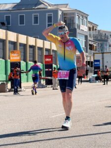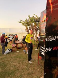 Per hatte eine tolle Vorbereitung und ist schon sehr zeitig angereist, denn mit Magda wohnt eine Athletin aus dem Team in SA, so dass die Anpassung kein Problem war. Wir waren guter Hoffnung das es ein flottes Rennen wird, denn in einem Vorbereitungswettkampf 2 Wochen vorher war er gut drauf und holte den ersten Platz auf der OD. Leider und das zeigt wieder einmal wie unberechenbar eine Langdistanz ist, wurde es ein sehr langer Tag für Per. Ordentlich Wellengang und die Radstrecke mit 3 Runden und viel starker Gegenwind waren mental schon fordernd. Die 42 km zu Fuß waren dann nur noch ein Kampf. Aufgeben war sicher eine Option, zumal es 4 Runden waren und die Versuchung natürlich da ist. Per hat sich durchgeschleppt, denn die vielen anderen Amateursportler haben es auch getan und waren noch viel länger unterwegs. Per – Kopf hoch, du musst niemanden mehr etwas beweisen. Regenerieren 🍀 und dann wieder auf den Laufstrecken angreifen. Da ist noch einiges Potential zu heben. 👍🤗